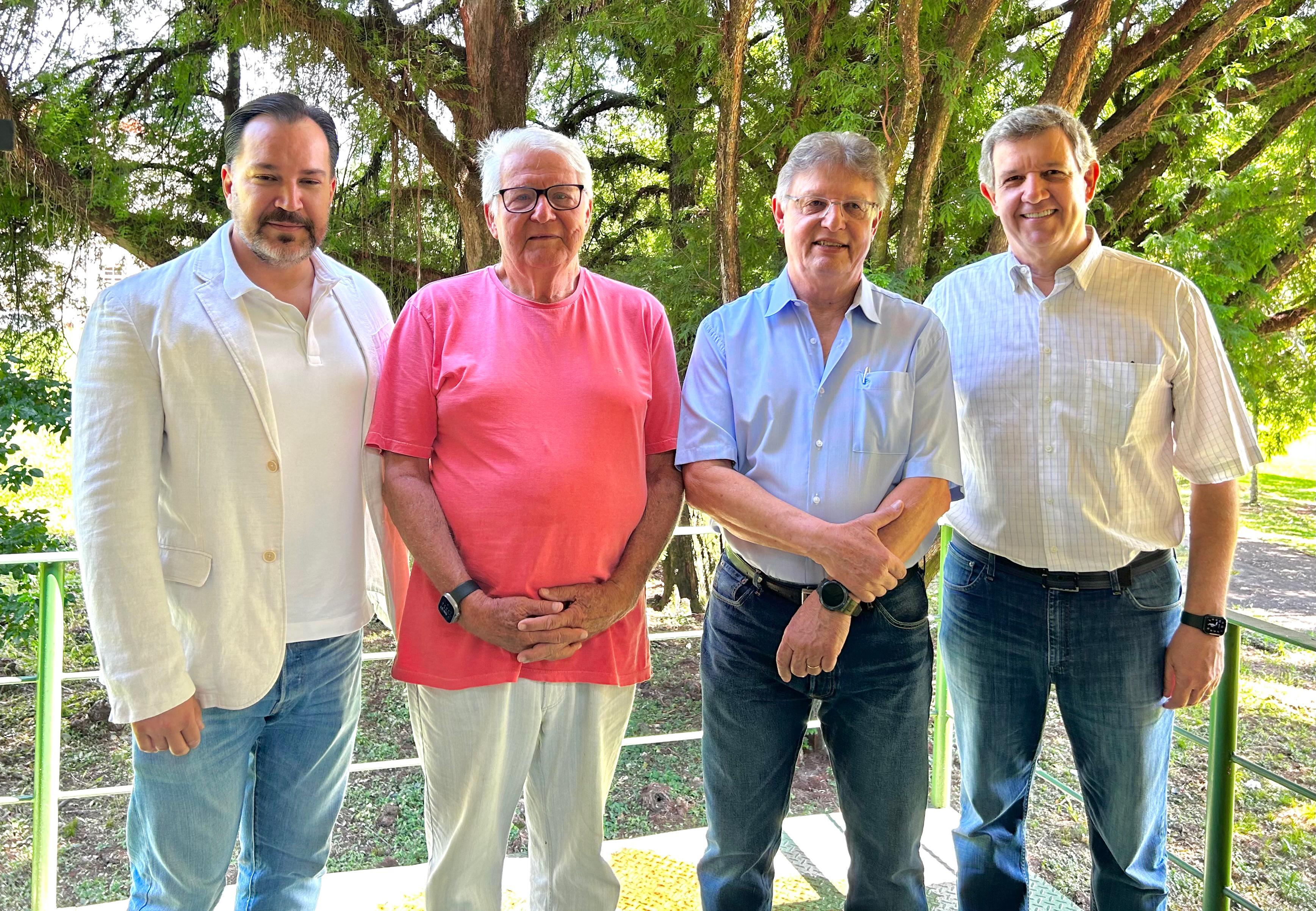 Na imagem, registram-se quatro gerações de editores-chefes da Scientia Agricola, todos esalqueanos: José Lavres Jr. (F98), Klaus Reichardt (F63), Jorge Alberto Rezende (F76) e Luis A. Martinelli (F85).
